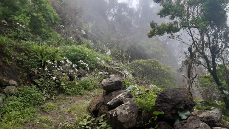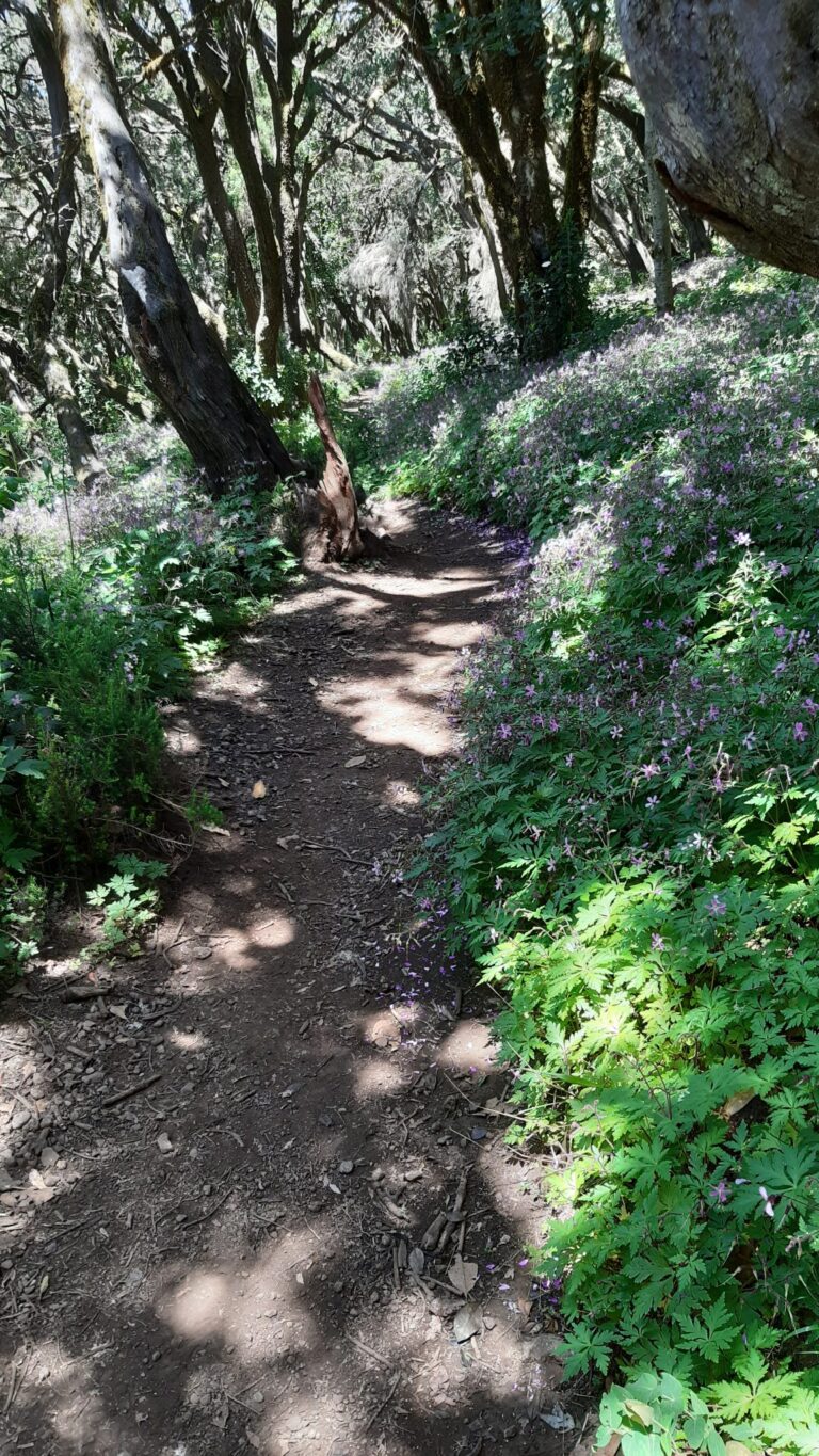 Het tweede gedeelte van etappe 24 begint over een klein asfaltwegggetje. Maar al snel worden het smalle paadjes langs weer flanken van een berg, door passen en kloven. Mooi uitzicht over de dalen tot Los Christianos en we zien ook…