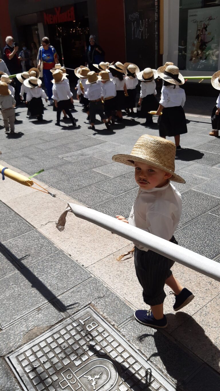 Met de ferry van Fred Olsen varen we van Agaete naar Santa Cruz de Tenerife. Als we een rondje door de stad maken volgen we een processie van dreumesen, verkleed als boeren en boerinnen. Ze lopen een beetje verwonderd in…