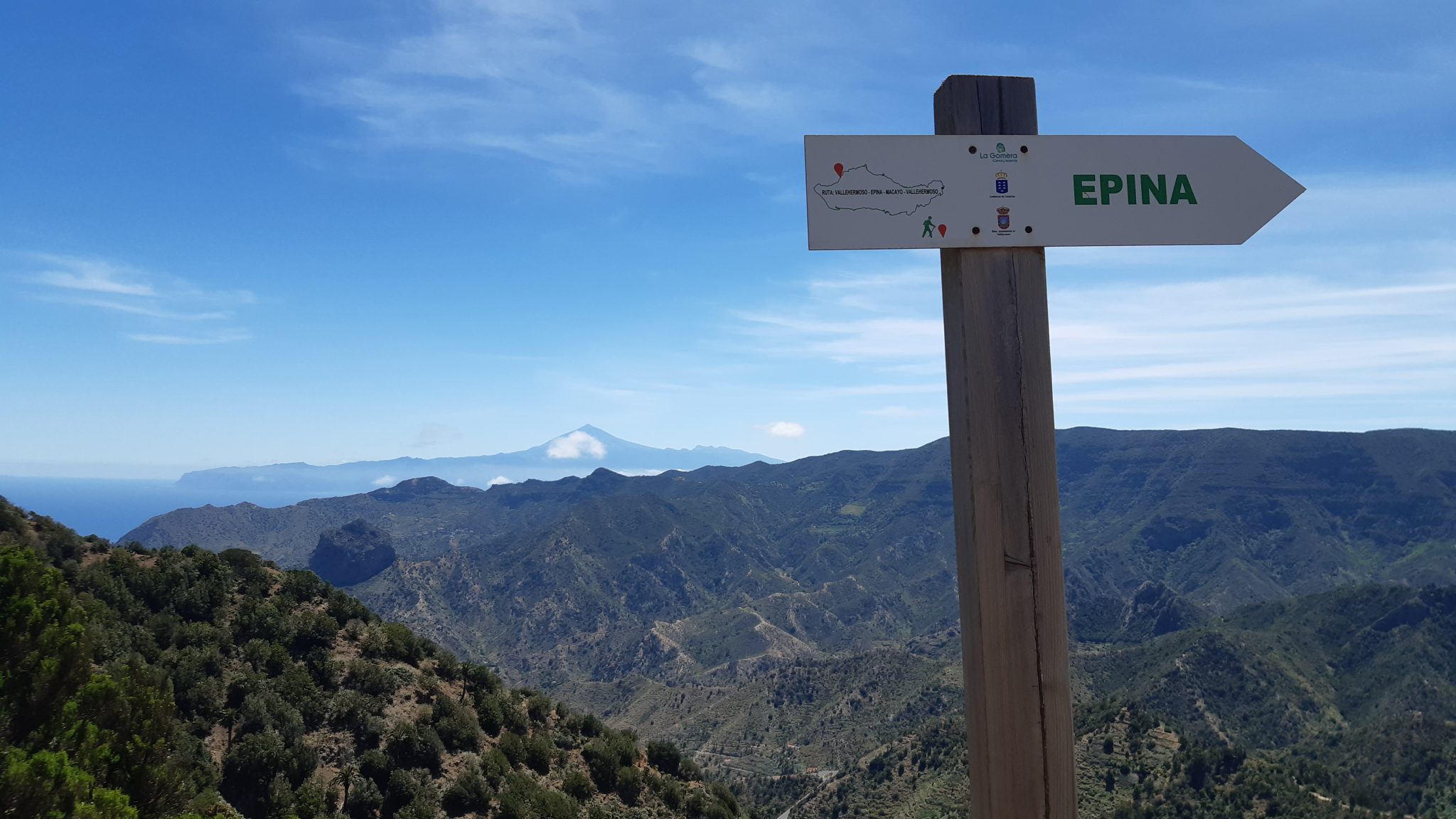 Terug naar Vallehermoso neem ik een lokale route en die is wel bijzonder. Eerst door laurierbos, dan paden omgeven door groen en bloemen, vervolgens door een dorp dat ooit bekend stond om zijn 10 wijnpersen en nog steeds wijn produceert. Tenslotte door het dal met tuinen en kleine akkers.